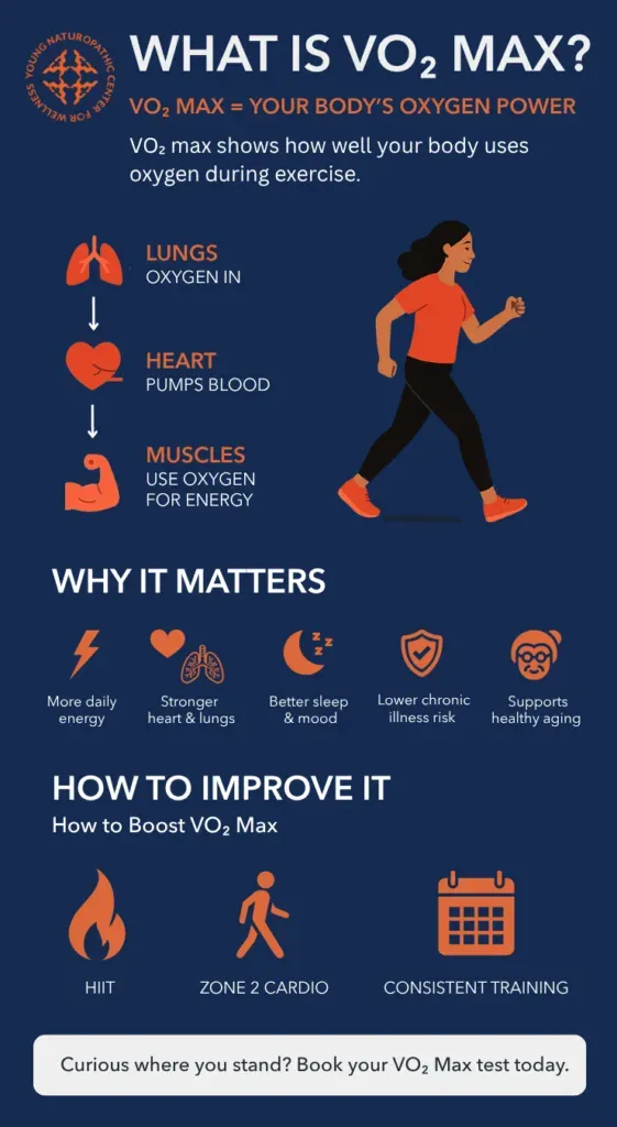 Low VO₂ max reduces the body’s ability to use oxygen to burn fat and glucose.
